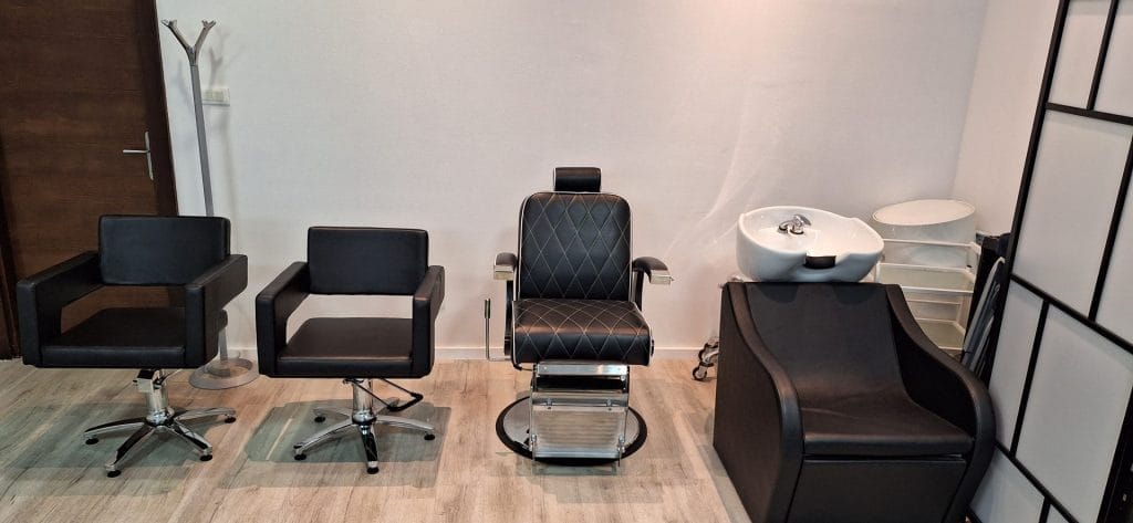 - Frizerska oprema: glavoper, muška brijača stolica, frizerske stolice, sterilizator, figaro, fen, četke, pomoćna kolica