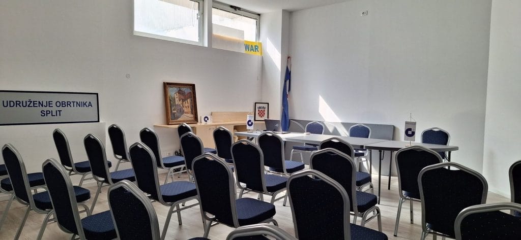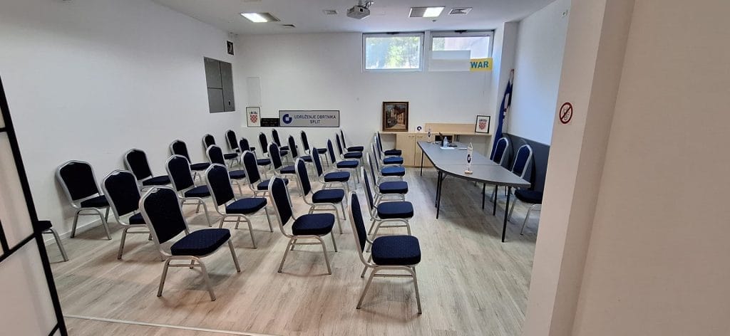 Zgrada Udruženja obrtnika Split, na adresi Ulica Slobode 28 udaljena je svega 15 metara od HRT-a i radio Splita pa pruža idealnu mogućnost održavanja press konferencija.