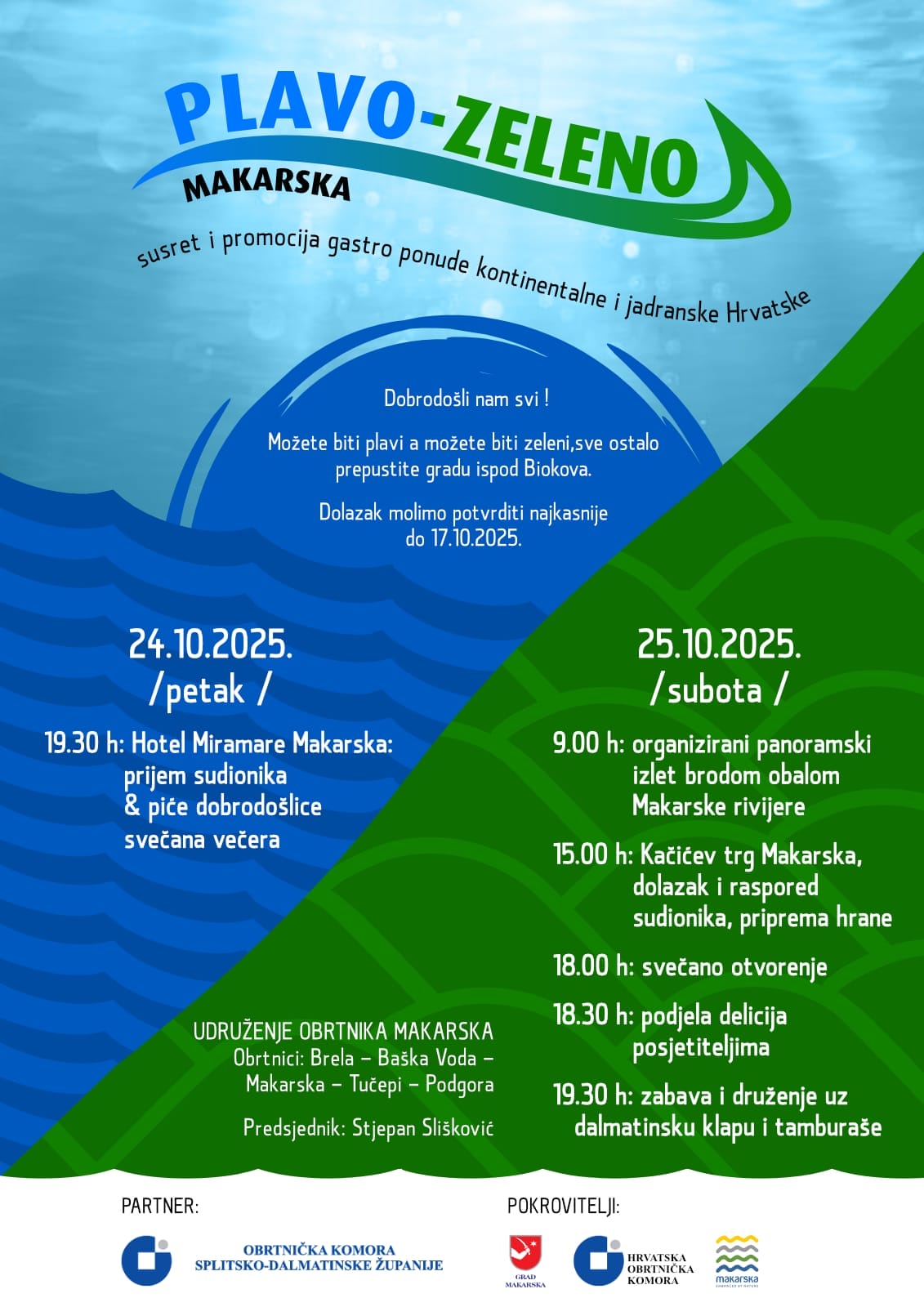Udruženje obrtnika Makarska  organizira 2. Obrtničke susrete “PlavoZeleno” 🐟🍀 koji će se održati u  Makarskoj od 24. do 26. listopada 2025.